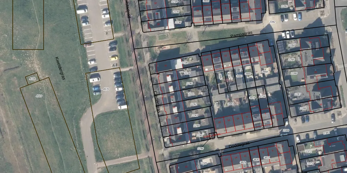 Gebruik de zoekbalk of klik op een perceel voor informatie over de adressen binnen dit perceel.