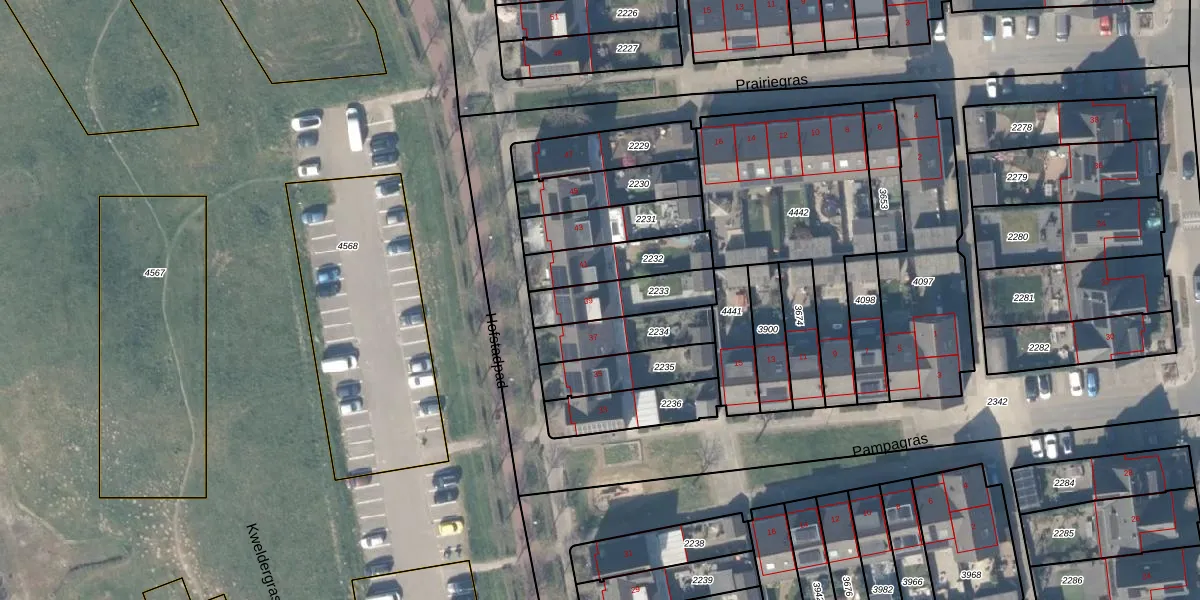 Gebruik de zoekbalk of klik op een perceel voor informatie over de adressen binnen dit perceel.