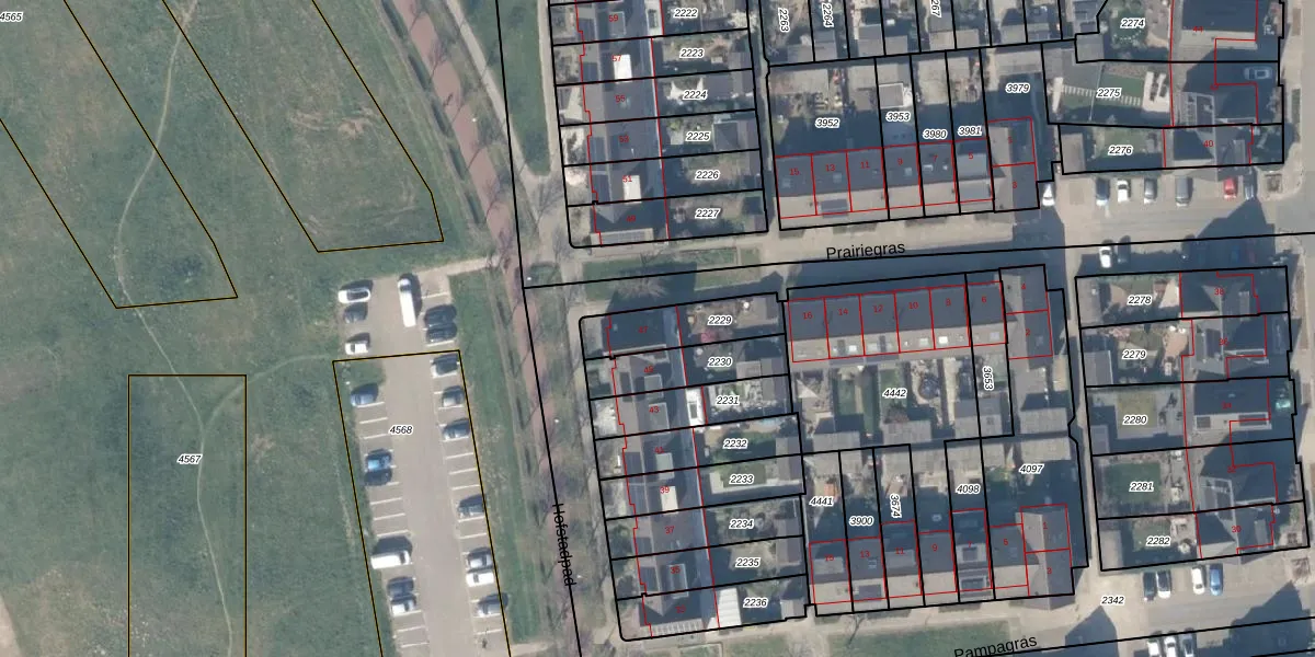 Gebruik de zoekbalk of klik op een perceel voor informatie over de adressen binnen dit perceel.