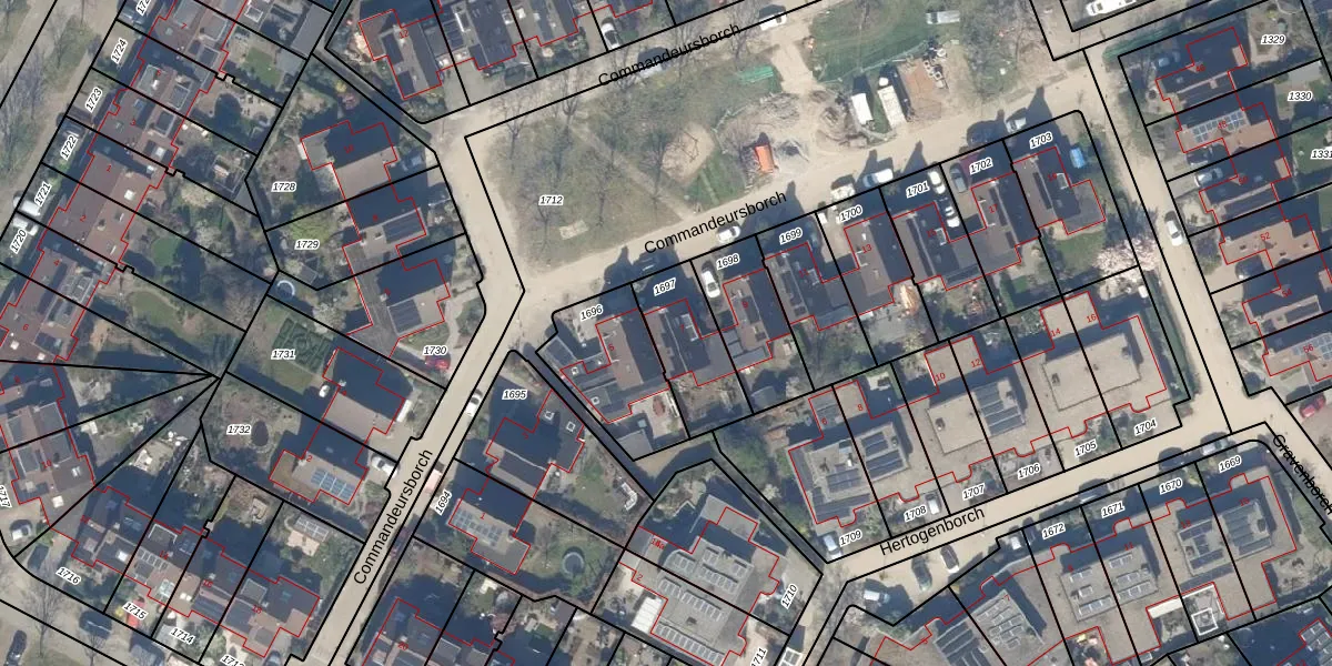 Het perceel waarop Commandeursborch 7 staat heeft een oppervlakte van 250 m². Dit is een middelgroot perceel. De perceeloppervlakte wordt geregistreerd door het Kadaster. Gedetailleerde informatie over de maten van dit perceel kunt u vinden in het rapport Kadastrale kaart met maatvoering van Commandeursborch 7.