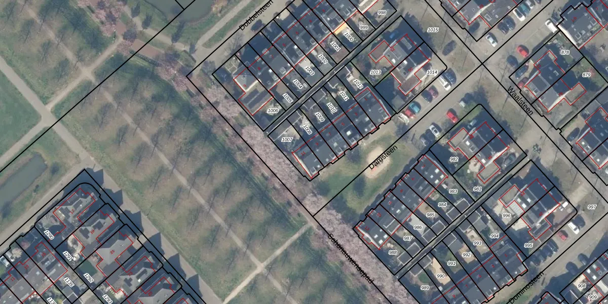 Gebruik de zoekbalk of klik op een perceel voor informatie over de adressen binnen dit perceel.
