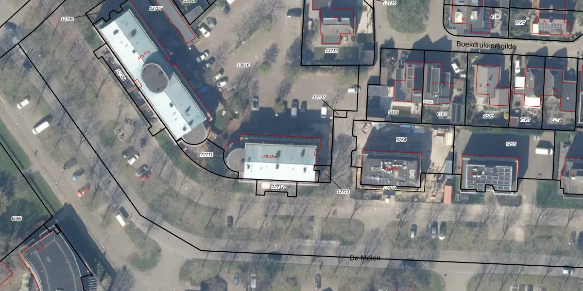 Het perceel waarop De Molen 43-g staat heeft een oppervlakte van 4027 m². Dit is een zeer groot perceel. De perceeloppervlakte wordt geregistreerd door het Kadaster. Gedetailleerde informatie over de maten van dit perceel kunt u vinden in het rapport Kadastrale kaart met maatvoering van De Molen 43-g.