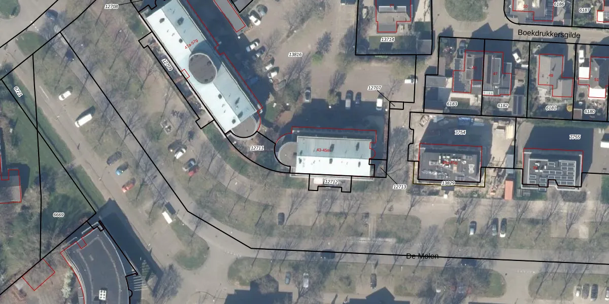 Het perceel waarop De Molen 45-k staat heeft een oppervlakte van 4027 m². Dit is een zeer groot perceel. De perceeloppervlakte wordt geregistreerd door het Kadaster. Gedetailleerde informatie over de maten van dit perceel kunt u vinden in het rapport Kadastrale kaart met maatvoering van De Molen 45-k.