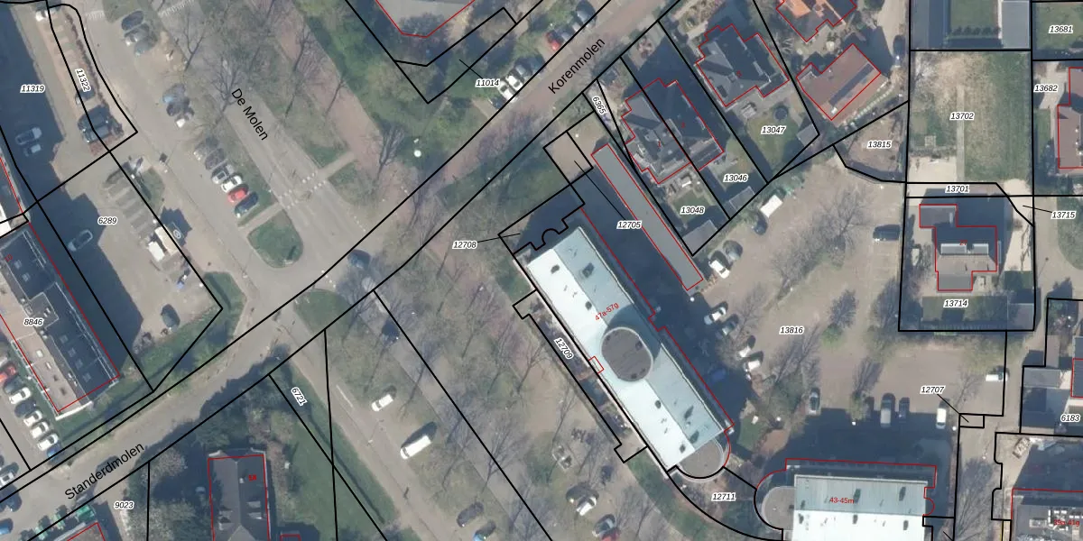Het perceel waarop De Molen 53-a staat heeft een oppervlakte van 4027 m². Dit is een zeer groot perceel. De perceeloppervlakte wordt geregistreerd door het Kadaster. Gedetailleerde informatie over de maten van dit perceel kunt u vinden in het rapport Kadastrale kaart met maatvoering van De Molen 53-a.