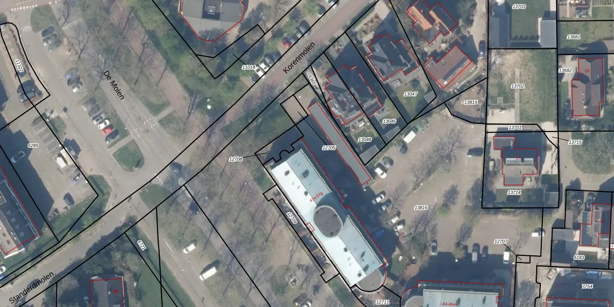 Het perceel waarop De Molen 57-b staat heeft een oppervlakte van 4027 m². Dit is een zeer groot perceel. De perceeloppervlakte wordt geregistreerd door het Kadaster. Gedetailleerde informatie over de maten van dit perceel kunt u vinden in het rapport Kadastrale kaart met maatvoering van De Molen 57-b.