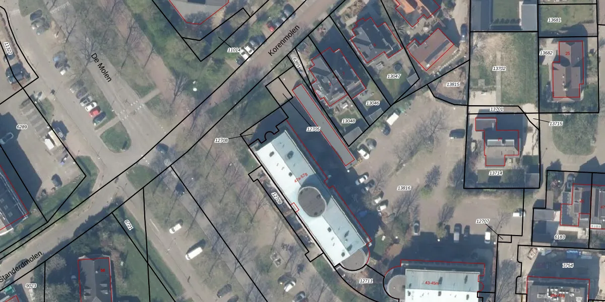 Het perceel waarop De Molen 57-c staat heeft een oppervlakte van 4027 m². Dit is een zeer groot perceel. De perceeloppervlakte wordt geregistreerd door het Kadaster. Gedetailleerde informatie over de maten van dit perceel kunt u vinden in het rapport Kadastrale kaart met maatvoering van De Molen 57-c.