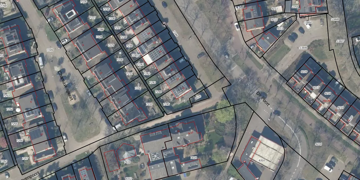 Het perceel waarop De Poort 12 staat heeft een oppervlakte van 290 m². Dit is een middelgroot perceel. De perceeloppervlakte wordt geregistreerd door het Kadaster. Gedetailleerde informatie over de maten van dit perceel kunt u vinden in het rapport Kadastrale kaart met maatvoering van De Poort 12.