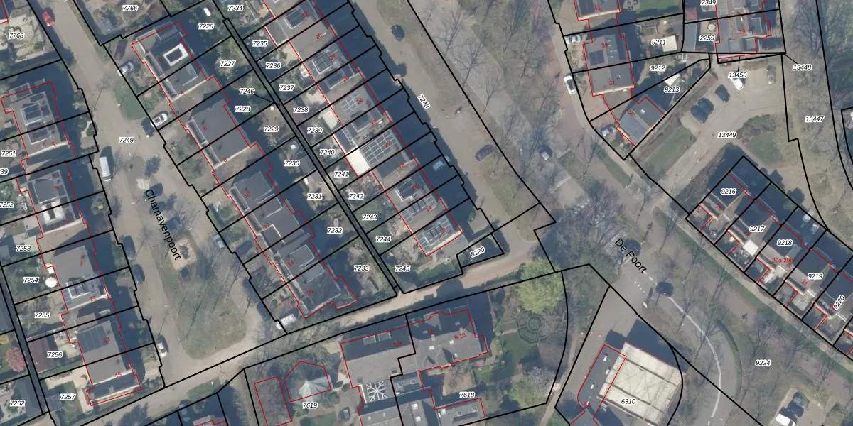 Het perceel waarop De Poort 14 staat heeft een oppervlakte van 153 m². Dit is een middelgroot perceel. De perceeloppervlakte wordt geregistreerd door het Kadaster. Gedetailleerde informatie over de maten van dit perceel kunt u vinden in het rapport Kadastrale kaart met maatvoering van De Poort 14.