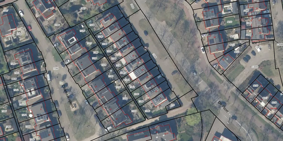 Het perceel waarop De Poort 20 staat heeft een oppervlakte van 153 m². Dit is een middelgroot perceel. De perceeloppervlakte wordt geregistreerd door het Kadaster. Gedetailleerde informatie over de maten van dit perceel kunt u vinden in het rapport Kadastrale kaart met maatvoering van De Poort 20.