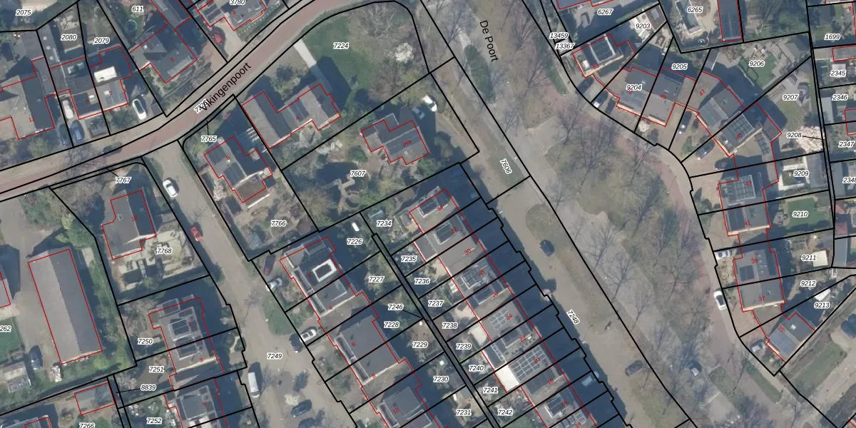 Het perceel waarop De Poort 34 staat heeft een oppervlakte van 282 m². Dit is een middelgroot perceel. De perceeloppervlakte wordt geregistreerd door het Kadaster. Gedetailleerde informatie over de maten van dit perceel kunt u vinden in het rapport Kadastrale kaart met maatvoering van De Poort 34.
