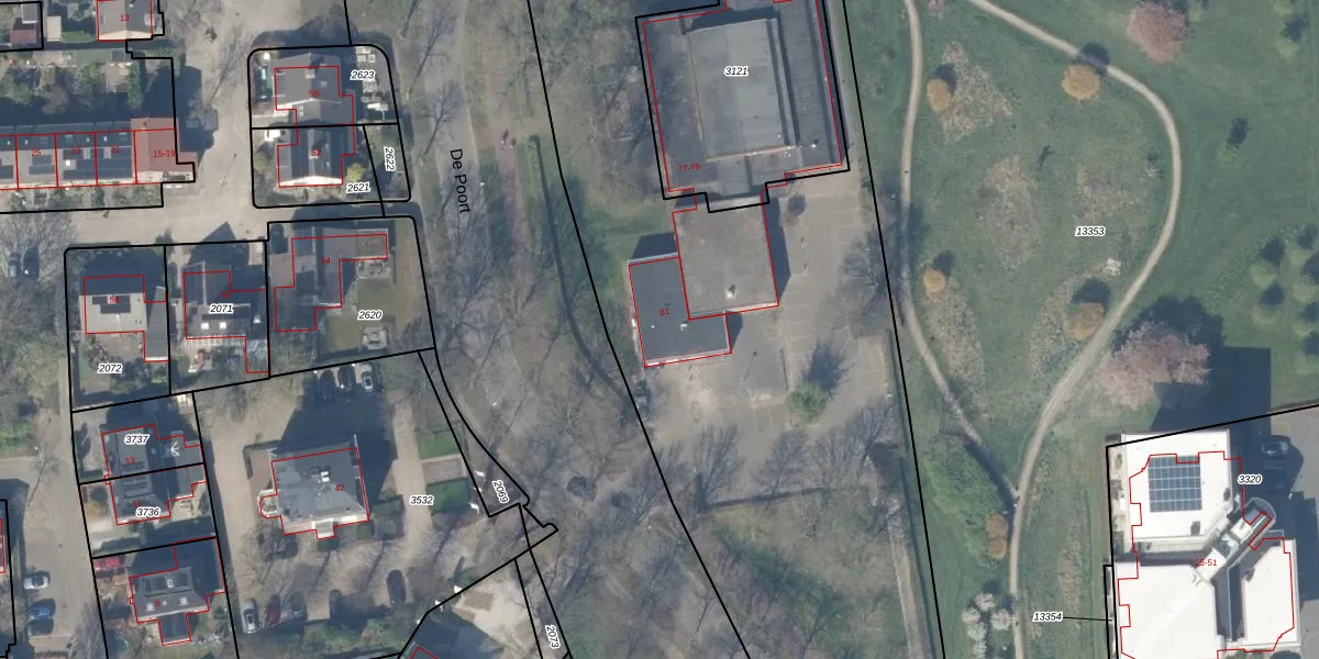 Het perceel waarop De Poort 81 staat heeft een oppervlakte van 5937 m². Dit is een zeer groot perceel. De perceeloppervlakte wordt geregistreerd door het Kadaster. Gedetailleerde informatie over de maten van dit perceel kunt u vinden in het rapport Kadastrale kaart met maatvoering van De Poort 81.