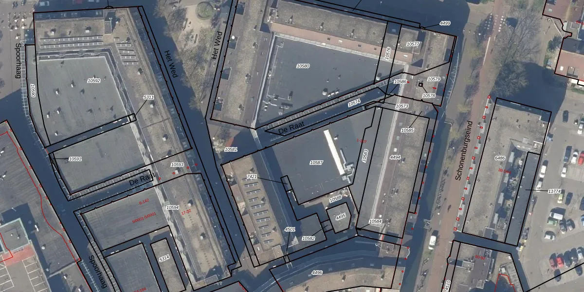 De Raat 12 is gelegen op kadastraal perceel HTN04A10587. Deze kadastrale aanduiding is uniek en wordt gebruikt door het Kadaster om eigendomsrechten en andere zakelijke rechten vast te leggen. Het perceel maakt onderdeel uit van de kadastrale gemeente Houten.