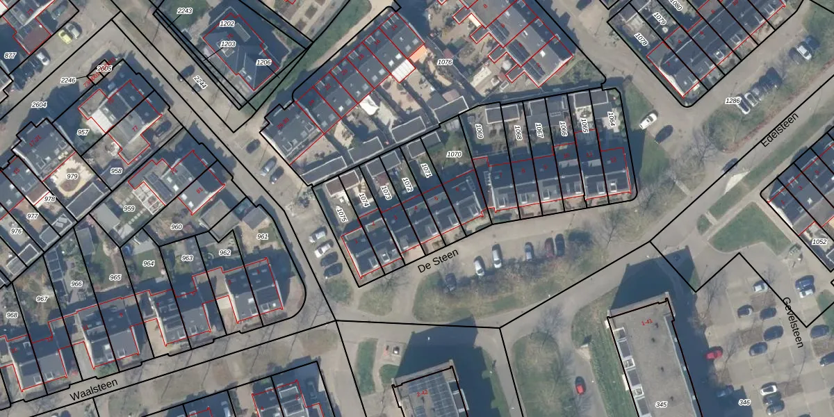 Het perceel waarop De Steen 4 staat heeft een oppervlakte van 144 m². Dit is een middelgroot perceel. De perceeloppervlakte wordt geregistreerd door het Kadaster. Gedetailleerde informatie over de maten van dit perceel kunt u vinden in het rapport Kadastrale kaart met maatvoering van De Steen 4.