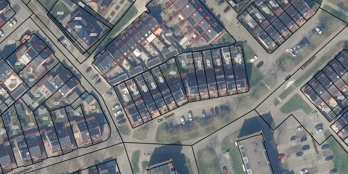 Het perceel waarop De Steen 6 staat heeft een oppervlakte van 233 m². Dit is een middelgroot perceel. De perceeloppervlakte wordt geregistreerd door het Kadaster. Gedetailleerde informatie over de maten van dit perceel kunt u vinden in het rapport Kadastrale kaart met maatvoering van De Steen 6.