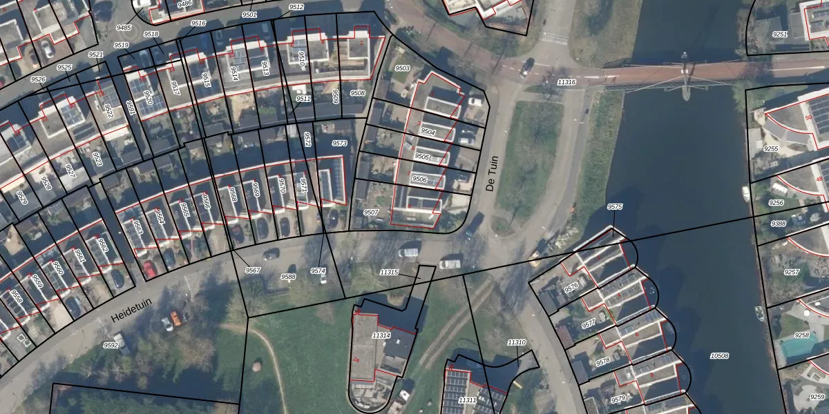 De Tuin 9 is gelegen op kadastraal perceel HTN04A9507. Deze kadastrale aanduiding is uniek en wordt gebruikt door het Kadaster om eigendomsrechten en andere zakelijke rechten vast te leggen. Het perceel maakt onderdeel uit van de kadastrale gemeente Houten.