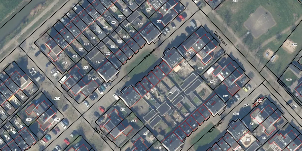Het perceel waarop Deksteen 11 staat heeft een oppervlakte van 2497 m². Dit is een zeer groot perceel. De perceeloppervlakte wordt geregistreerd door het Kadaster. Gedetailleerde informatie over de maten van dit perceel kunt u vinden in het rapport Kadastrale kaart met maatvoering van Deksteen 11.