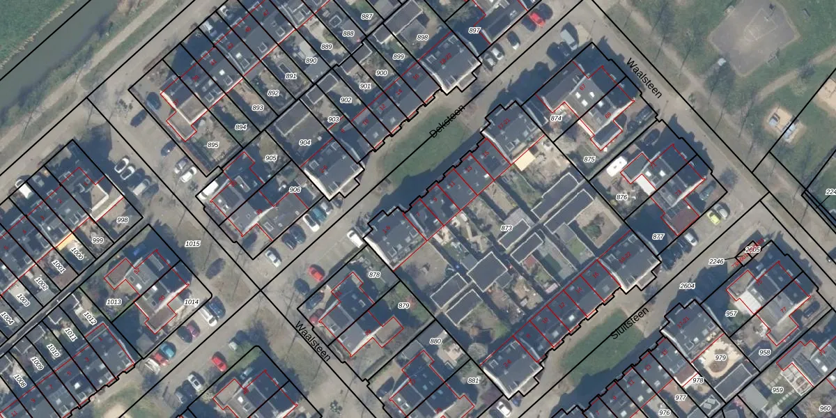 Het perceel waarop Deksteen 7 staat heeft een oppervlakte van 2497 m². Dit is een zeer groot perceel. De perceeloppervlakte wordt geregistreerd door het Kadaster. Gedetailleerde informatie over de maten van dit perceel kunt u vinden in het rapport Kadastrale kaart met maatvoering van Deksteen 7.