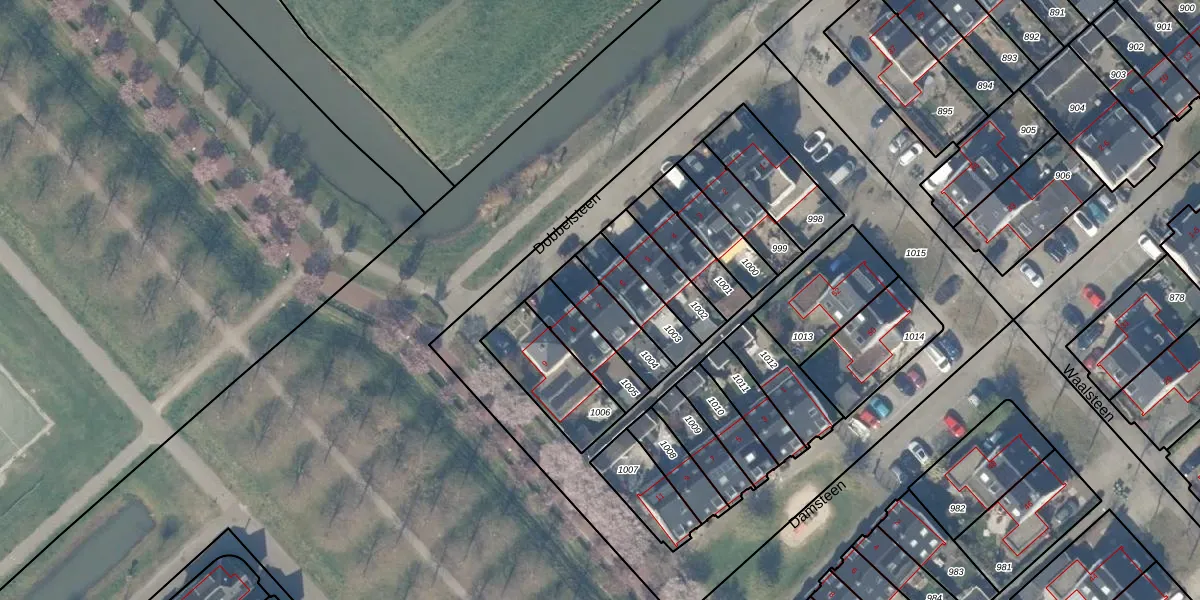 Dobbelsteen 7 is gelegen op kadastraal perceel HTN04H1004. Deze kadastrale aanduiding is uniek en wordt gebruikt door het Kadaster om eigendomsrechten en andere zakelijke rechten vast te leggen. Het perceel maakt onderdeel uit van de kadastrale gemeente Houten.