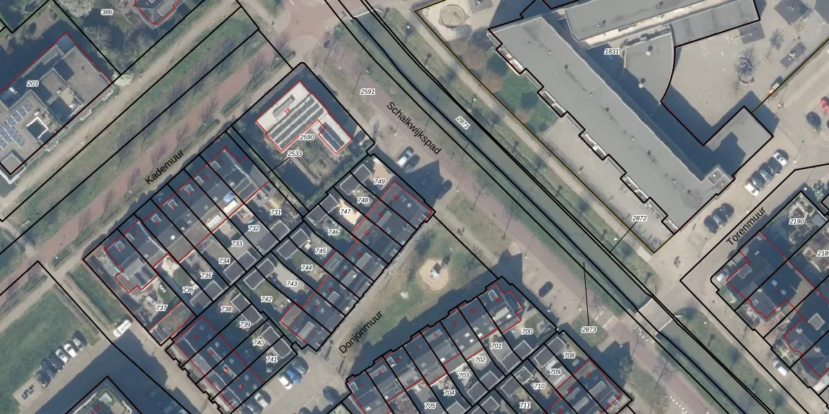 Donjonmuur 16 is gelegen op kadastraal perceel HTN04H749. Deze kadastrale aanduiding is uniek en wordt gebruikt door het Kadaster om eigendomsrechten en andere zakelijke rechten vast te leggen. Het perceel maakt onderdeel uit van de kadastrale gemeente Houten.