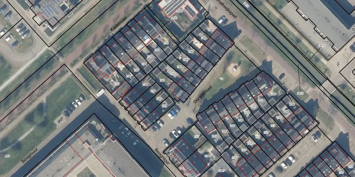 Donjonmuur 2 is gelegen op kadastraal perceel HTN04H742. Deze kadastrale aanduiding is uniek en wordt gebruikt door het Kadaster om eigendomsrechten en andere zakelijke rechten vast te leggen. Het perceel maakt onderdeel uit van de kadastrale gemeente Houten.