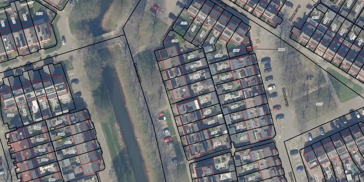 Dorscamp 16 is gelegen op kadastraal perceel HTN04E1353. Deze kadastrale aanduiding is uniek en wordt gebruikt door het Kadaster om eigendomsrechten en andere zakelijke rechten vast te leggen. Het perceel maakt onderdeel uit van de kadastrale gemeente Houten.