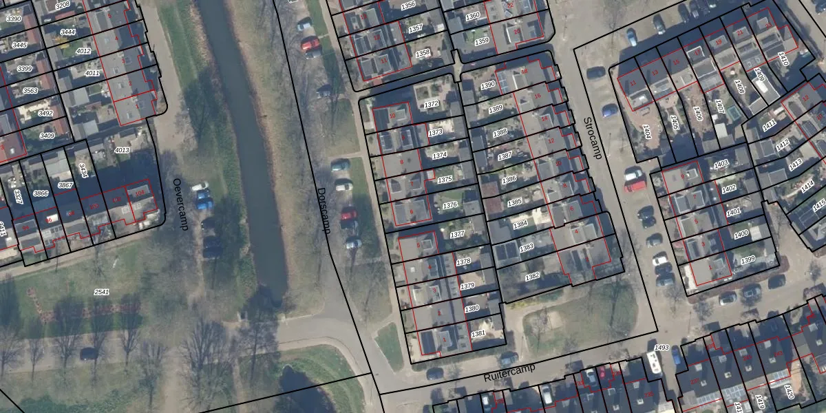 Gebruik de zoekbalk of klik op een perceel voor informatie over de adressen binnen dit perceel.