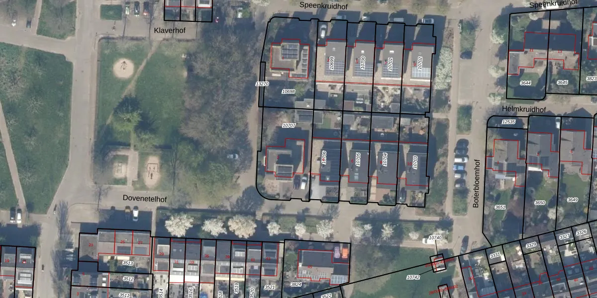 Het perceel waarop Dovenetelhof 2 staat heeft een oppervlakte van 532 m². Dit is een groot perceel. De perceeloppervlakte wordt geregistreerd door het Kadaster. Gedetailleerde informatie over de maten van dit perceel kunt u vinden in het rapport Kadastrale kaart met maatvoering van Dovenetelhof 2.