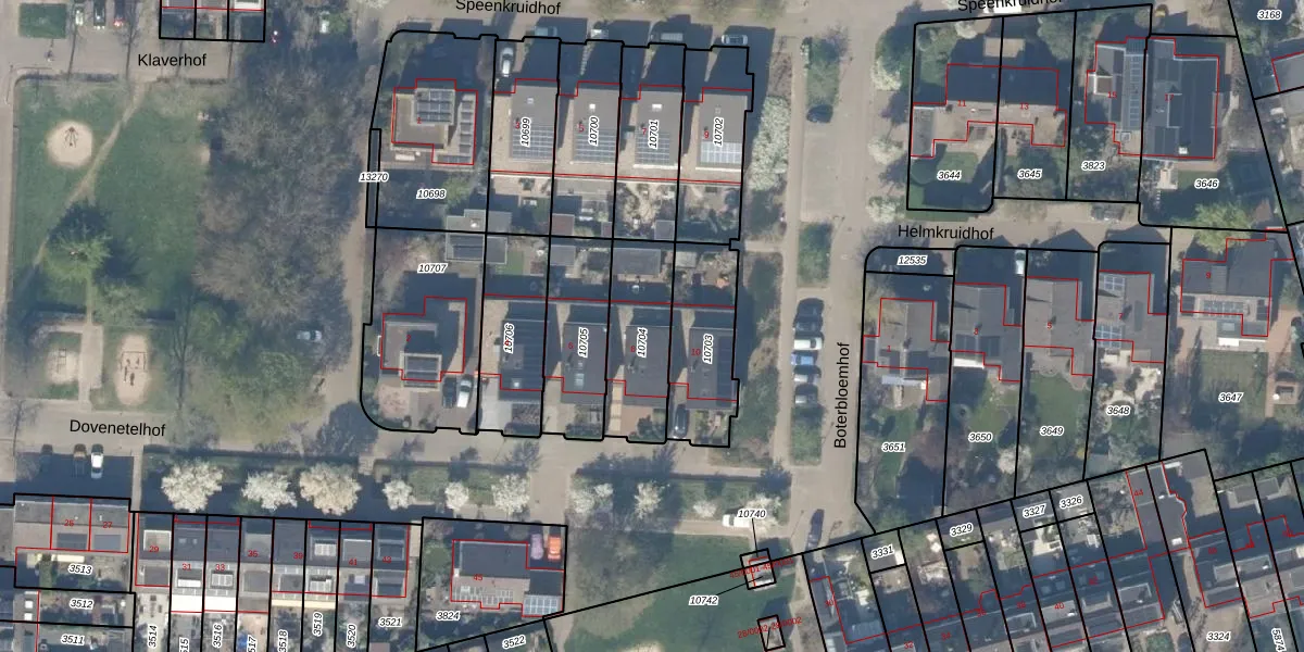 Gebruik de zoekbalk of klik op een perceel voor informatie over de adressen binnen dit perceel.
