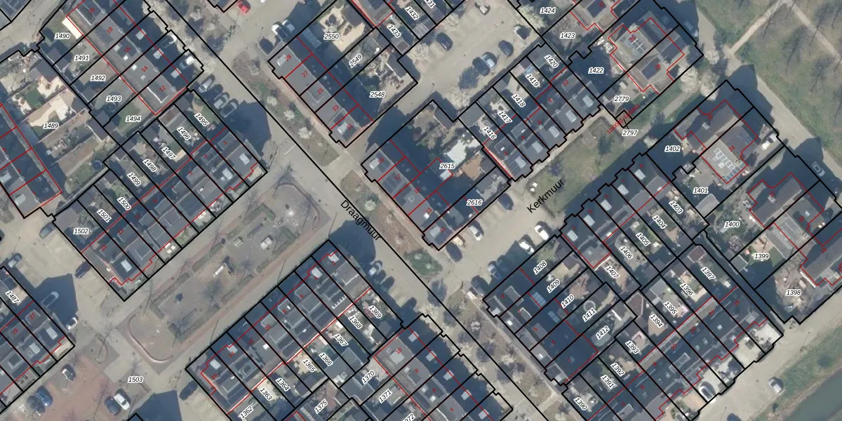 Draagmuur 13 is gelegen op kadastraal perceel HTN04H2615. Deze kadastrale aanduiding is uniek en wordt gebruikt door het Kadaster om eigendomsrechten en andere zakelijke rechten vast te leggen. Het perceel maakt onderdeel uit van de kadastrale gemeente Houten.