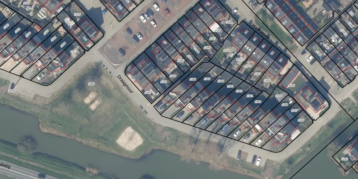 Het perceel waarop Draagmuur 38 staat heeft een oppervlakte van 233 m². Dit is een middelgroot perceel. De perceeloppervlakte wordt geregistreerd door het Kadaster. Gedetailleerde informatie over de maten van dit perceel kunt u vinden in het rapport Kadastrale kaart met maatvoering van Draagmuur 38.