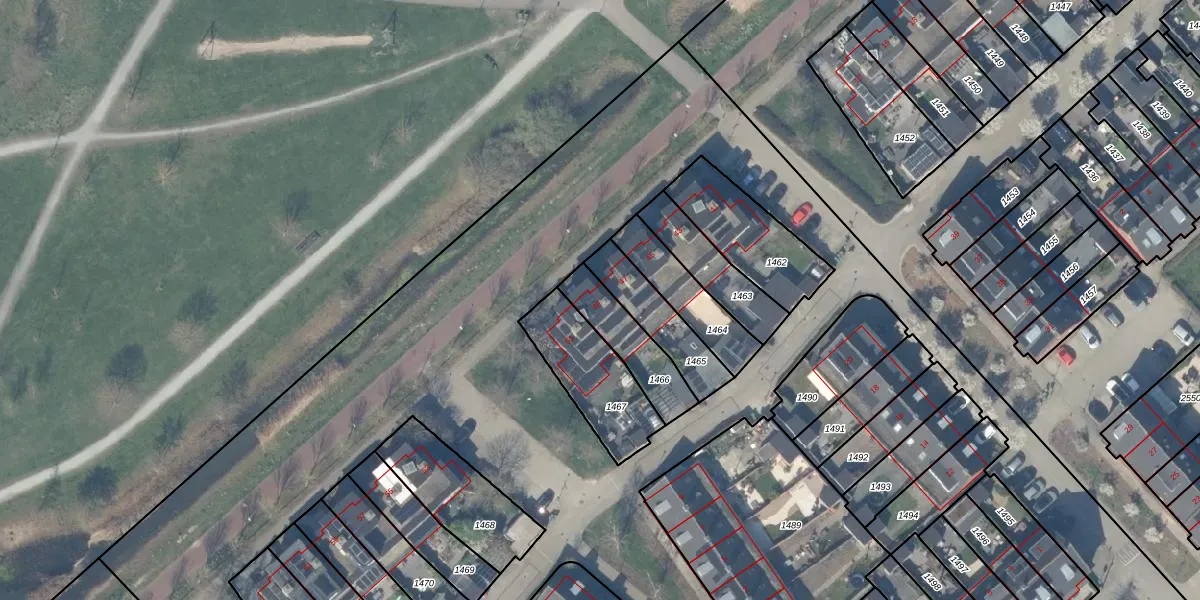 Het perceel waarop het adres ligt is HTN04-H-1466. De afkorting 'HTN04' staat voor kadastrale gemeente Houten. Het perceel is kleiner dan gemiddeld in Houten. Het perceel is 189 m² groot, terwijl het gemiddelde ligt op 2871,04 m². Het kleinste perceel in de kadastrale gemeente is 0 m² groot. De grootste perceeloppervlakte is 45,3 ha. Op het perceel bevinden zich geen andere adressen. In de Basisregistratie Kadaster (BRK) werden de grenzen van het perceel geregistreerd op 06-02-2007.