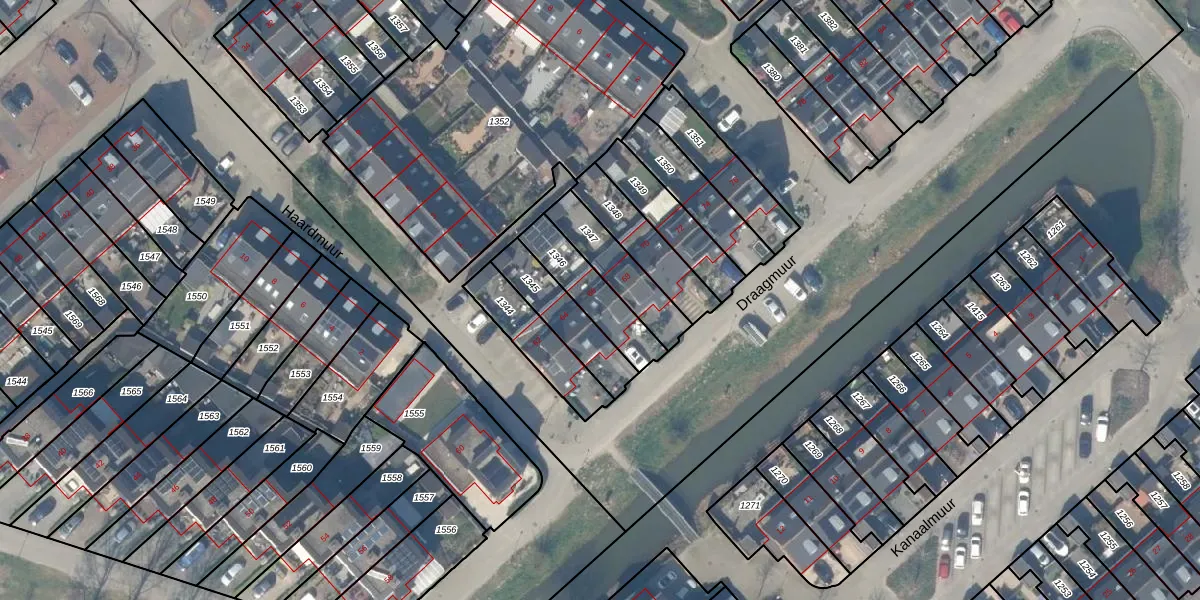 Het perceel waarop Draagmuur 66 staat heeft een oppervlakte van 184 m². Dit is een middelgroot perceel. De perceeloppervlakte wordt geregistreerd door het Kadaster. Gedetailleerde informatie over de maten van dit perceel kunt u vinden in het rapport Kadastrale kaart met maatvoering van Draagmuur 66.