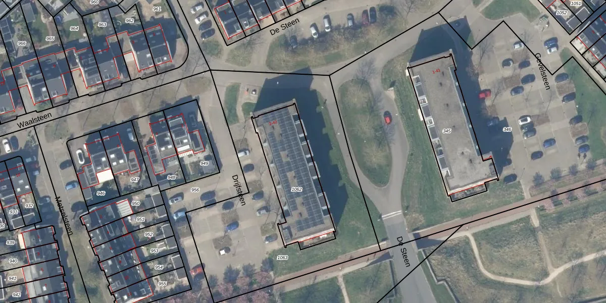 Het perceel waarop Drijfsteen 36 staat heeft een oppervlakte van 693 m². Dit is een groot perceel. De perceeloppervlakte wordt geregistreerd door het Kadaster. Gedetailleerde informatie over de maten van dit perceel kunt u vinden in het rapport Kadastrale kaart met maatvoering van Drijfsteen 36.