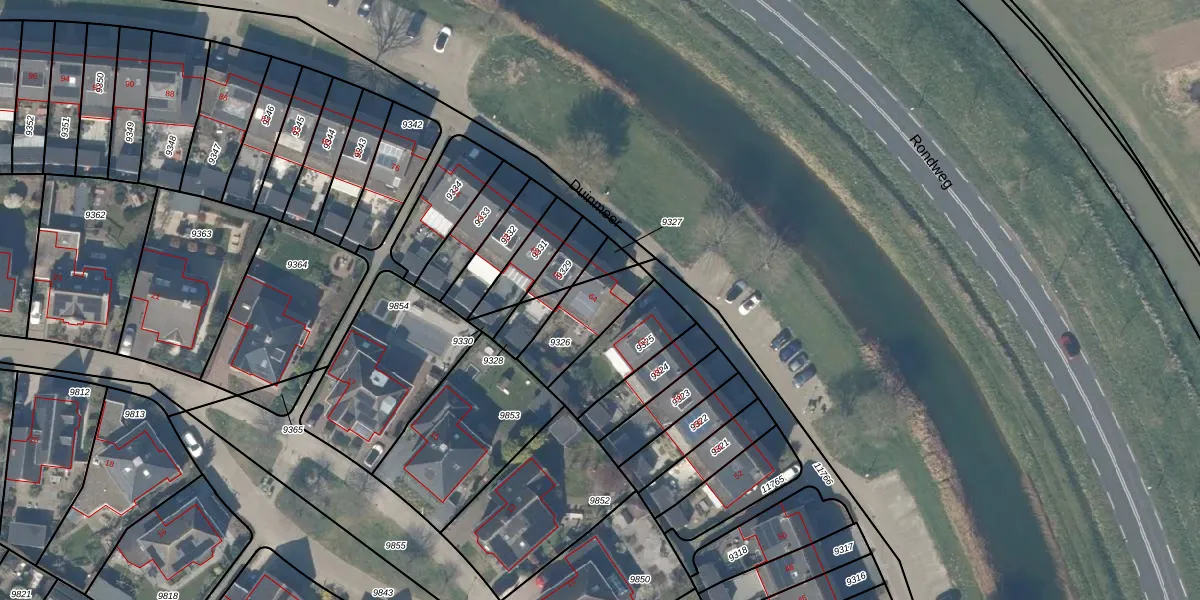 Het perceel waarop het adres ligt is HTN04-A-9326. De afkorting 'HTN04' staat voor kadastrale gemeente Houten. Het perceel is kleiner dan gemiddeld in Houten. Het perceel is 187 m² groot, terwijl het gemiddelde ligt op 2873 m². De grootste perceeloppervlakte in de kadastrale gemeente is 45,3 ha. De kleinste oppervlakte bedraagt 0 m². Op het perceel bevinden zich geen andere adressen. De huidige grenzen van het perceel zijn digitaal in de Basisregistratie Kadaster (BRK) geregistreerd op 02-05-2001.