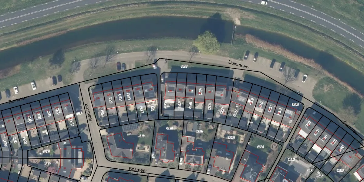 Gebruik de zoekbalk of klik op een perceel voor informatie over de adressen binnen dit perceel.