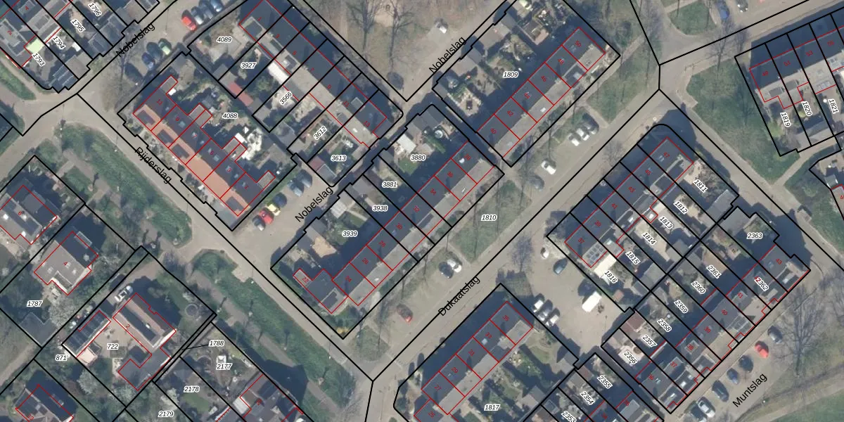 Gebruik de zoekbalk of klik op een perceel voor informatie over de adressen binnen dit perceel.