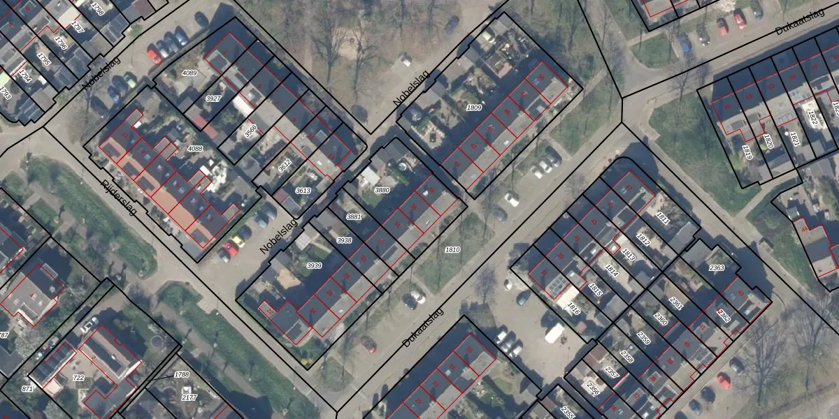 Het perceel waarop Dukaatslag 36 staat heeft een oppervlakte van 426 m². Dit is een groot perceel. De perceeloppervlakte wordt geregistreerd door het Kadaster. Gedetailleerde informatie over de maten van dit perceel kunt u vinden in het rapport Kadastrale kaart met maatvoering van Dukaatslag 36.