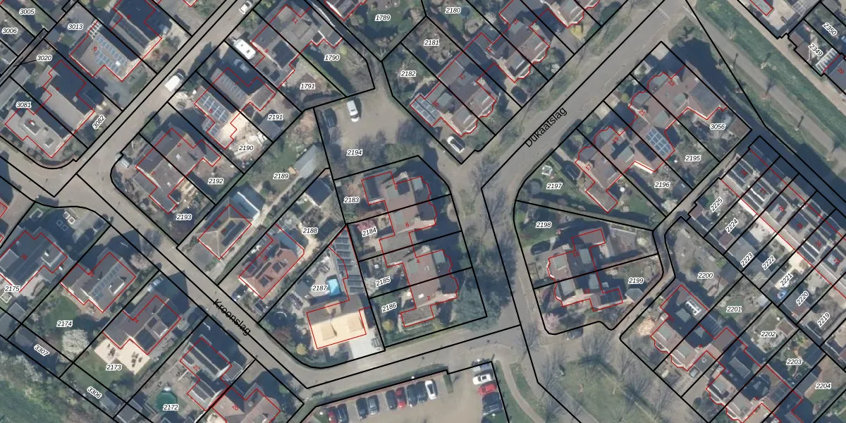 Gebruik de zoekbalk of klik op een perceel voor informatie over de adressen binnen dit perceel.