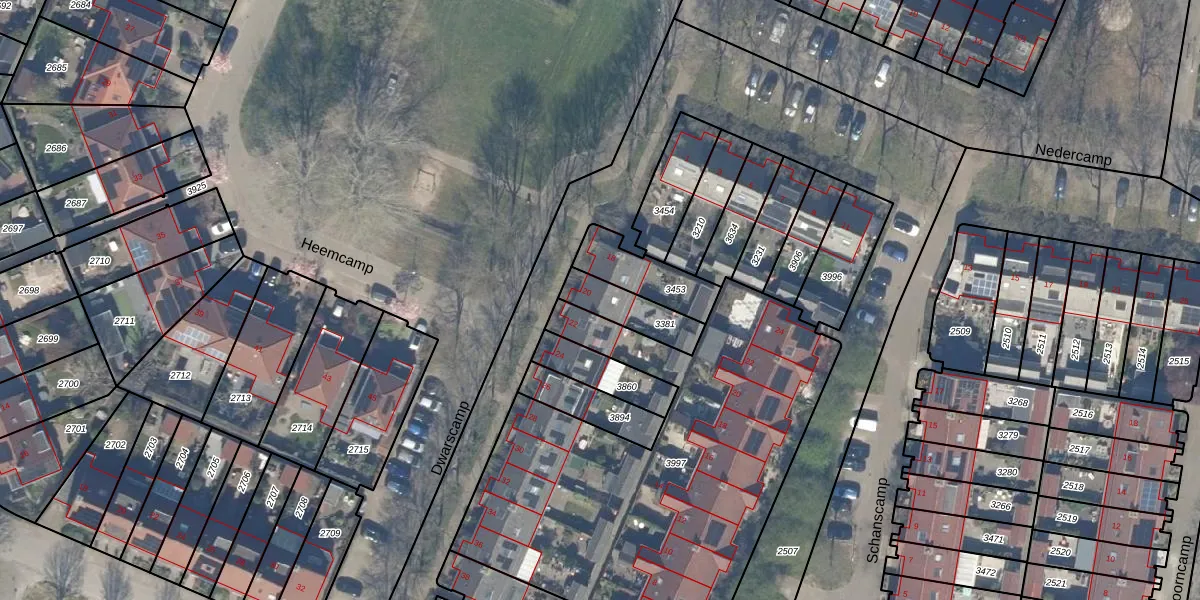 Dwarscamp 20 is gelegen op kadastraal perceel HTN04E3381. Deze kadastrale aanduiding is uniek en wordt gebruikt door het Kadaster om eigendomsrechten en andere zakelijke rechten vast te leggen. Het perceel maakt onderdeel uit van de kadastrale gemeente Houten.