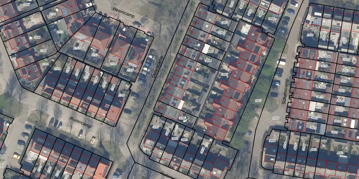 Dwarscamp 34 is gelegen op kadastraal perceel HTN04E3997. Deze kadastrale aanduiding is uniek en wordt gebruikt door het Kadaster om eigendomsrechten en andere zakelijke rechten vast te leggen. Het perceel maakt onderdeel uit van de kadastrale gemeente Houten.