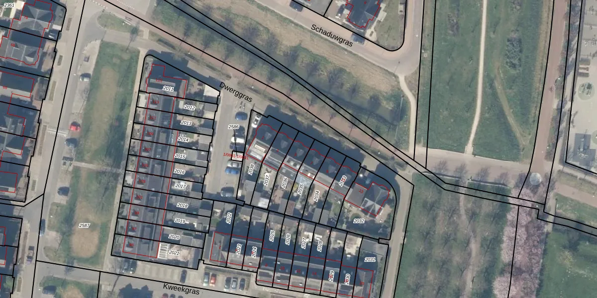 Gebruik de zoekbalk of klik op een perceel voor informatie over de adressen binnen dit perceel.