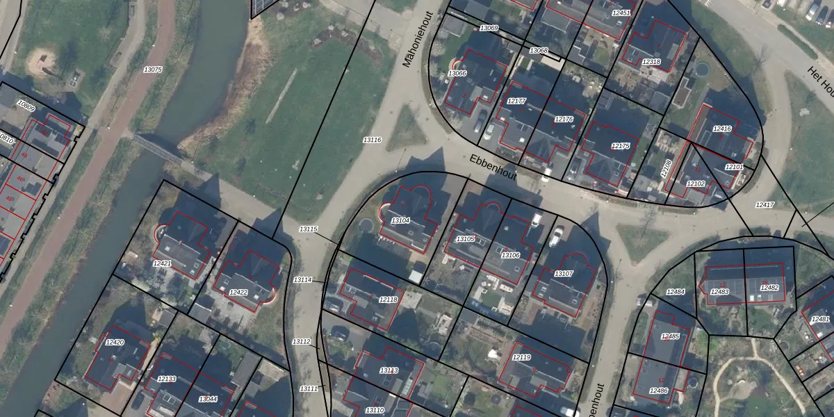 Gebruik de zoekbalk of klik op een perceel voor informatie over de adressen binnen dit perceel.