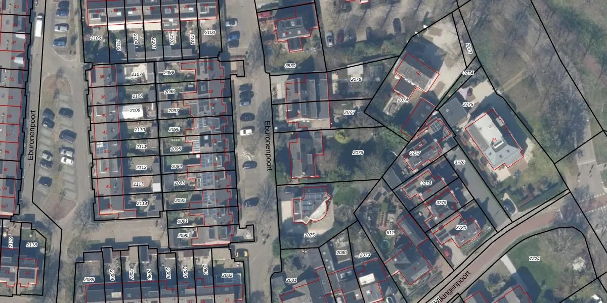 Het perceel waarop Eburonenpoort 3 staat heeft een oppervlakte van 690 m². Dit is een groot perceel. De perceeloppervlakte wordt geregistreerd door het Kadaster. Gedetailleerde informatie over de maten van dit perceel kunt u vinden in het rapport Kadastrale kaart met maatvoering van Eburonenpoort 3.