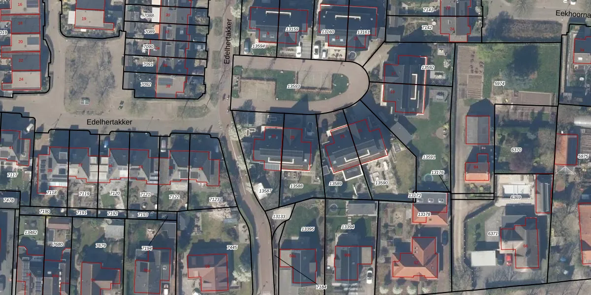 Edelhertakker 25 is gelegen op kadastraal perceel HTN04A13588. Deze kadastrale aanduiding is uniek en wordt gebruikt door het Kadaster om eigendomsrechten en andere zakelijke rechten vast te leggen. Het perceel maakt onderdeel uit van de kadastrale gemeente Houten.