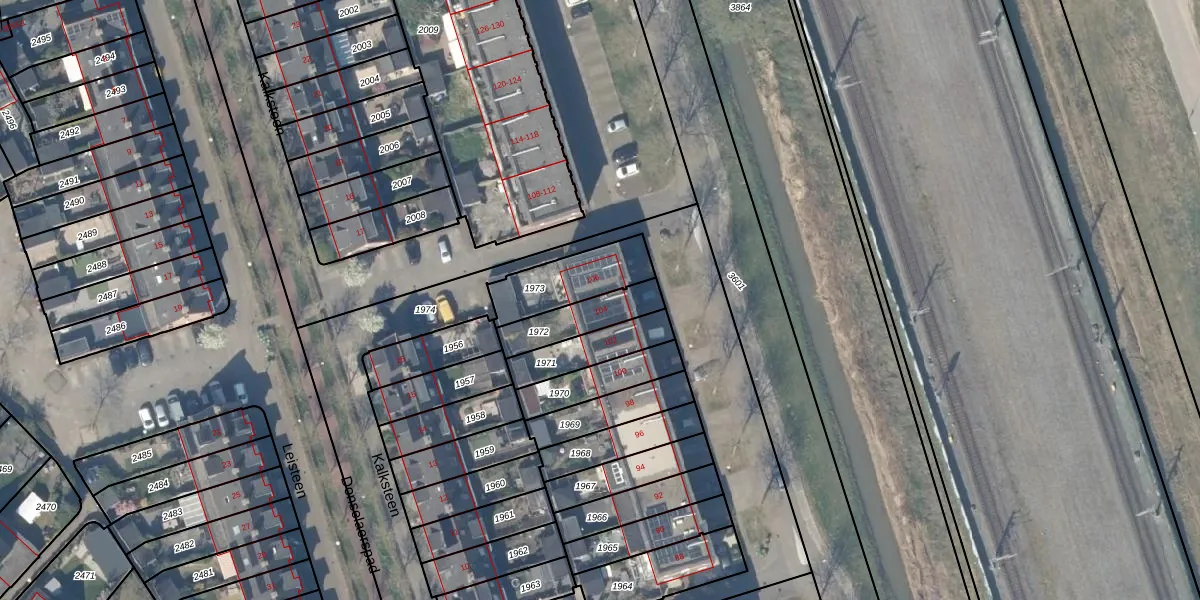 Gebruik de zoekbalk of klik op een perceel voor informatie over de adressen binnen dit perceel.