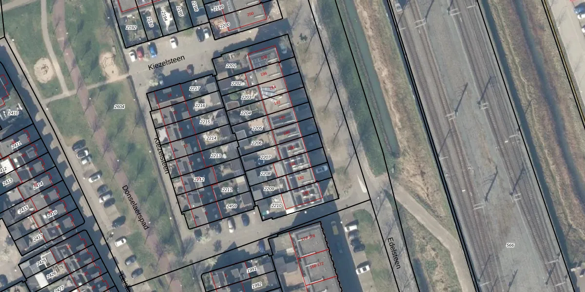 Edelsteen 186 is gelegen op kadastraal perceel HTN04B2207. Deze kadastrale aanduiding is uniek en wordt gebruikt door het Kadaster om eigendomsrechten en andere zakelijke rechten vast te leggen. Het perceel maakt onderdeel uit van de kadastrale gemeente Houten.