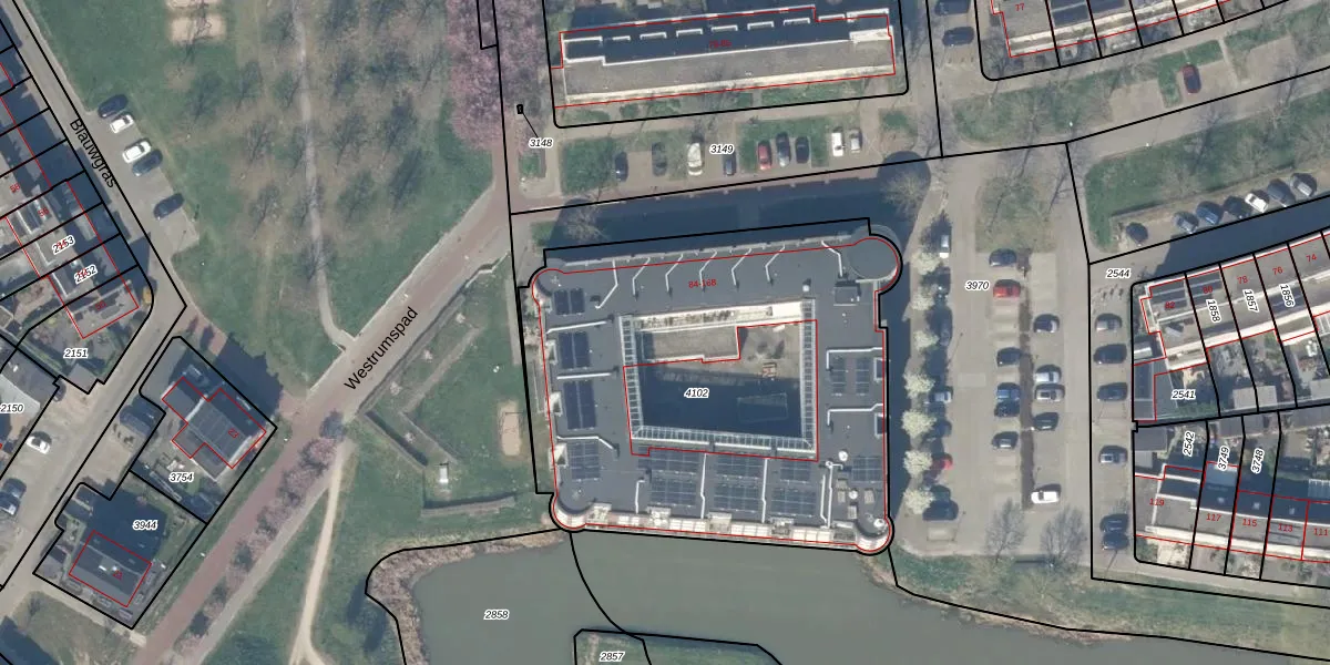 Het perceel waarop het adres ligt is HTN04-B-4102. De afkorting 'HTN04' staat voor kadastrale gemeente Houten. De gemiddelde perceelgrootte in Houten is 2872,3 m². Dit perceel is kleiner: de perceeloppervlakte bedraagt 2466 m². Het kleinste perceel in de kadastrale gemeente is 0 m² groot. De grootste perceeloppervlakte is 45,3 ha. Op het perceel liggen in totaal 43 adressen. De huidige grenzen van het perceel zijn digitaal in de Basisregistratie Kadaster (BRK) geregistreerd op 01-11-2019.