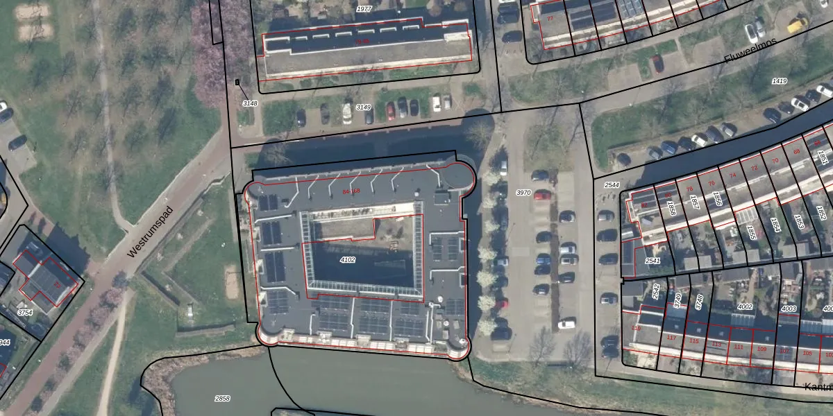 Het perceel waarop het adres ligt is HTN04-B-4102. De afkorting 'HTN04' staat voor kadastrale gemeente Houten. De gemiddelde perceelgrootte in Houten is 2872,44 m². Dit perceel is kleiner: de perceeloppervlakte bedraagt 2466 m². Het kleinste perceel in de kadastrale gemeente is 0 m² groot. De grootste perceeloppervlakte is 45,3 ha. Op het perceel liggen in totaal 43 adressen. In de Basisregistratie Kadaster (BRK) werden de grenzen van het perceel geregistreerd op 01-11-2019.