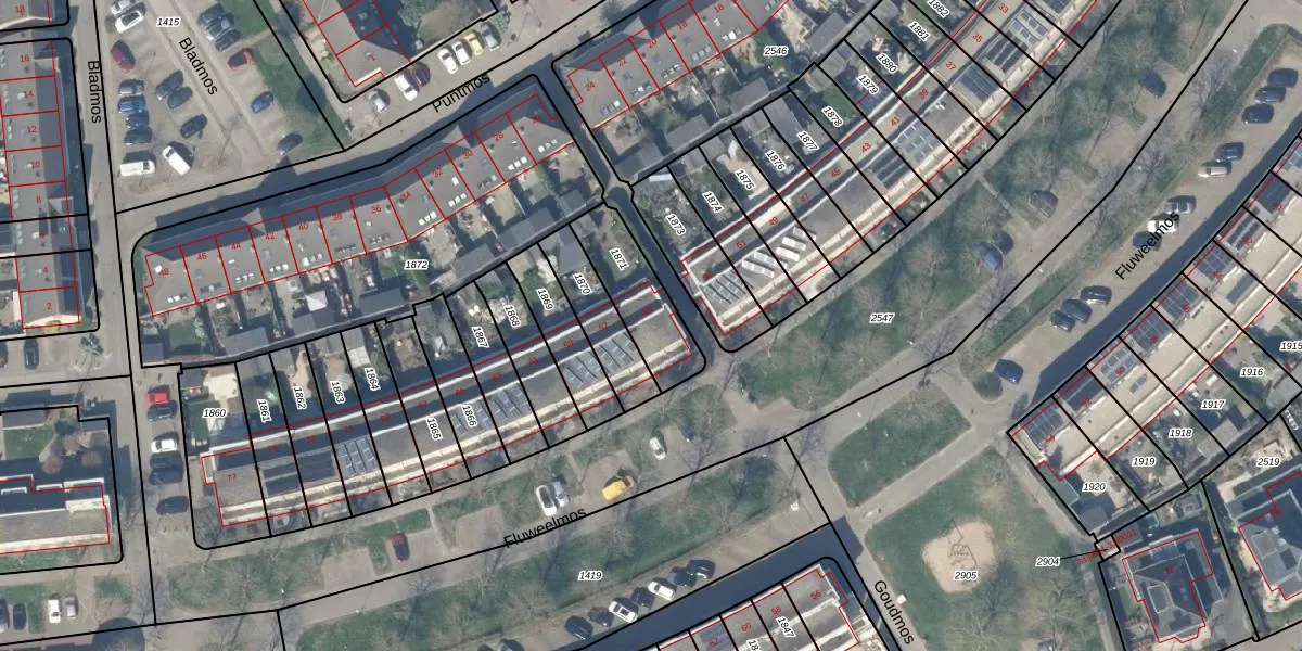 Het perceel waarop het adres ligt is HTN04-B-1871. De afkorting 'HTN04' staat voor kadastrale gemeente Houten. De gemiddelde perceelgrootte in Houten is 2872,58 m². Dit perceel is kleiner: de perceeloppervlakte bedraagt 233 m². De grootste perceeloppervlakte in de kadastrale gemeente is 45,3 ha. De kleinste oppervlakte bedraagt 0 m². Er zijn geen andere adressen aanwezig op het perceel. In de Basisregistratie Kadaster (BRK) werden de grenzen van het perceel geregistreerd op 21-07-2004.