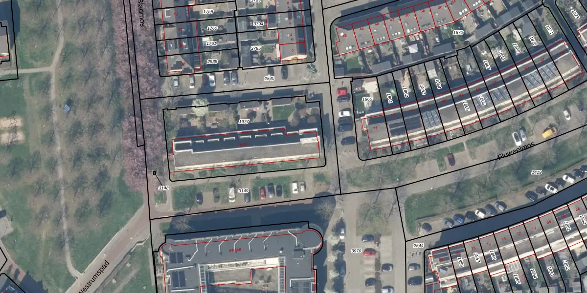 Het perceel waarop het adres ligt is HTN04-B-1977. De afkorting 'HTN04' staat voor kadastrale gemeente Houten. De gemiddelde perceelgrootte in Houten is 2872,58 m². Dit perceel is kleiner: de perceeloppervlakte bedraagt 1300 m². Het grootste perceel in de kadastrale gemeente is 45,3 ha. Het kleinste perceel heeft een oppervlakte van 0 m². Op het perceel zijn 4 adressen aanwezig. De laatste wijziging in het de Basisregistratie Kadaster (BRK) was op 16-01-2012.